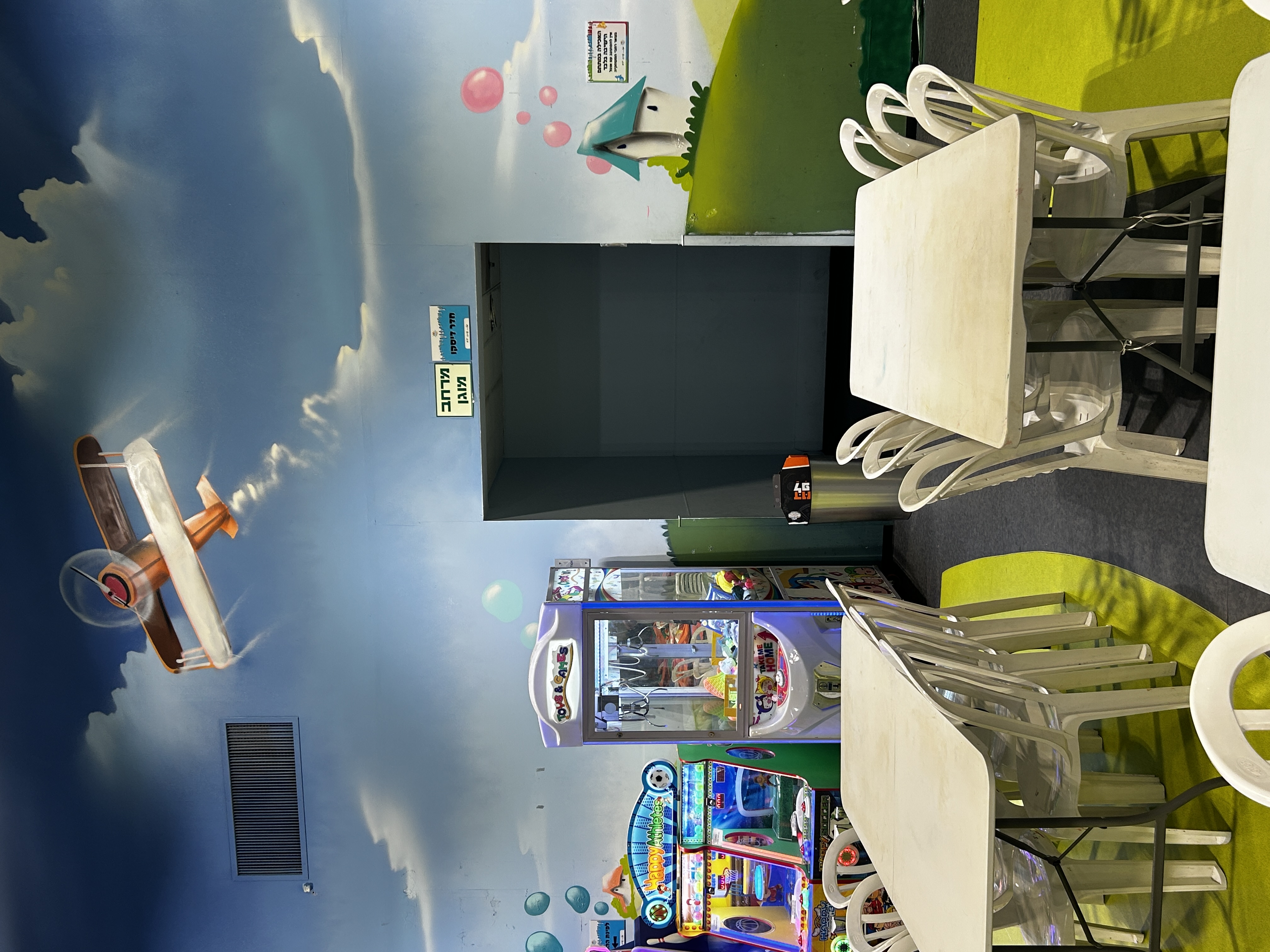 Indoor playground with various games and activities Indoor bomb shelter Bomb shelter near dining tables