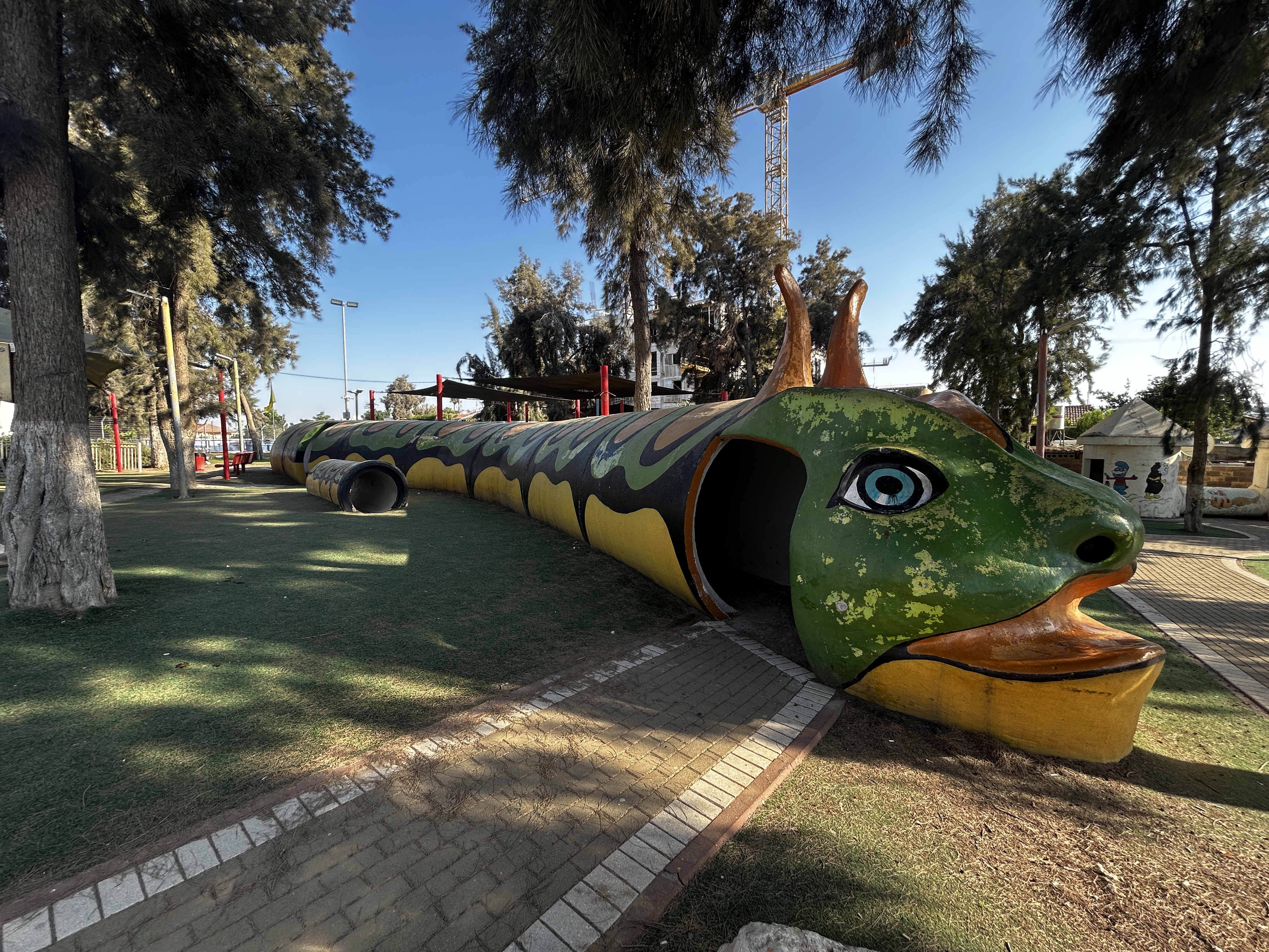 But Sderot has improved, and thanks to the Iron Dome, rockets are not that big of a threat anymore. Most of them get intercepted, and the biggest fear nowadays is the rocket shrapnel rather than direct impact. This allowed for making children’s parks more (for the lack of a better word) casual.