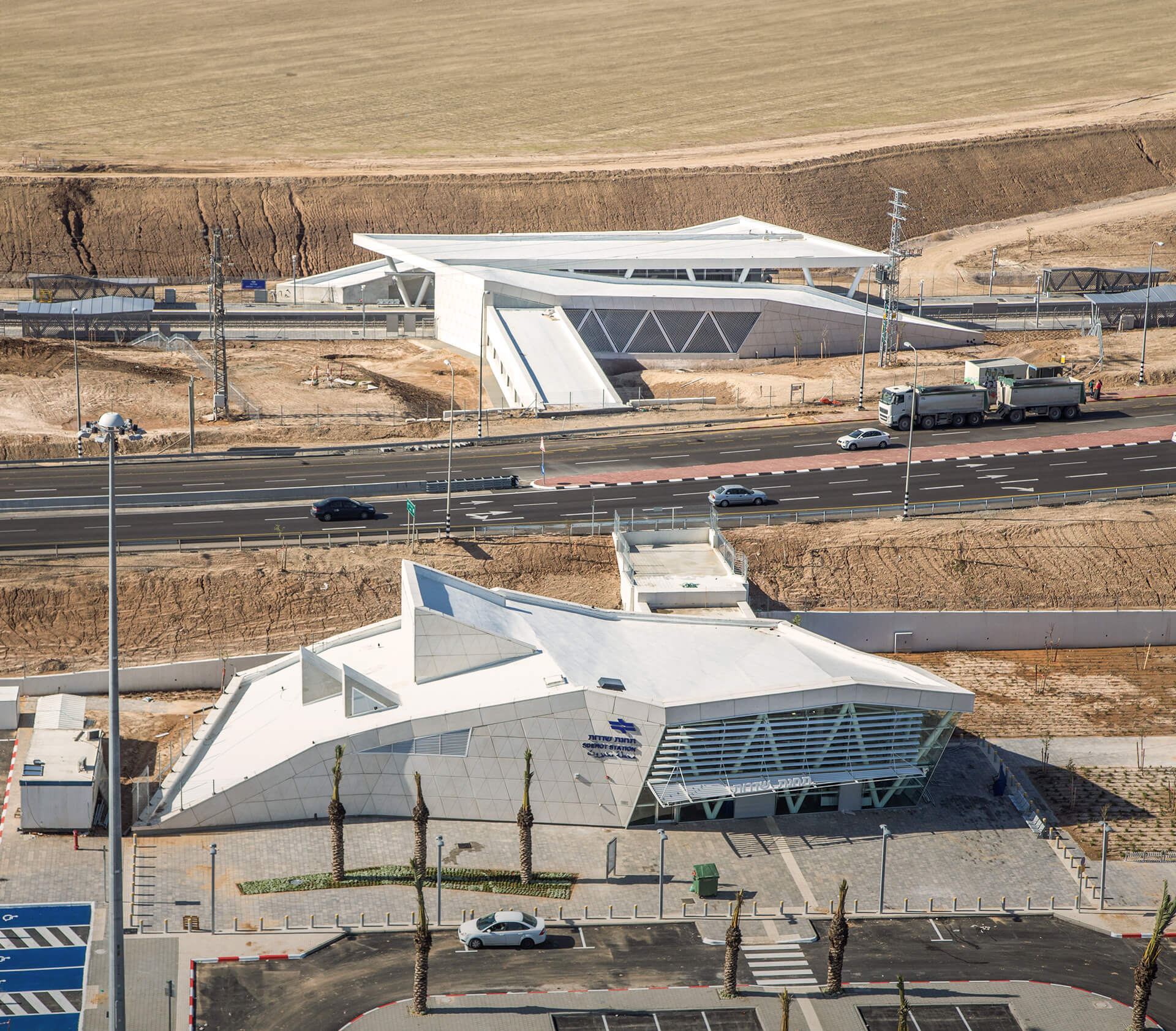 Sderot train station ceiling. Notice the thick concrete. Sderot train station outside view. Sderot train station from above source: Mann Shinar Architects